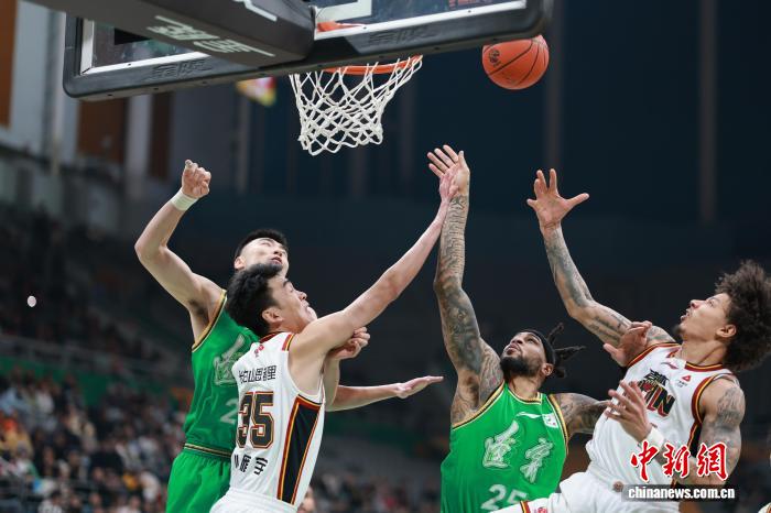 1月4日,正在辽宁沈阳举办的2025-2026赛季华夏须眉篮球做事联赛(CBA)旧例赛第10轮,辽宁原钢队主场86:72胜少黑山恩皆里队。图为辽宁原钢队球员莫兰德(左两)正在角逐中拼抢。中新社记者 于陆地 摄