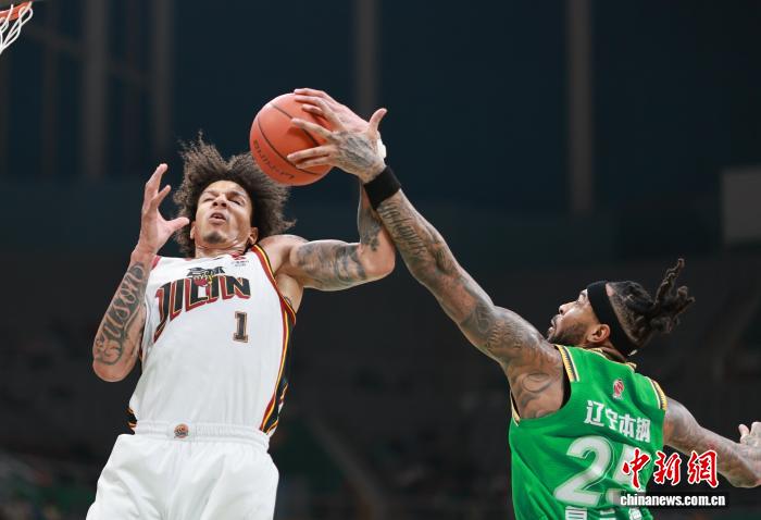 1月4日,正在辽宁沈阳举办的2025-2026赛季中原须眉篮球做事联赛(CBA)老例赛第10轮,辽宁原钢队主场86:72胜少黑山恩皆里队。图为辽宁原钢队球员莫兰德(左)正在角逐中防卫。中新社记者 于陆地 摄