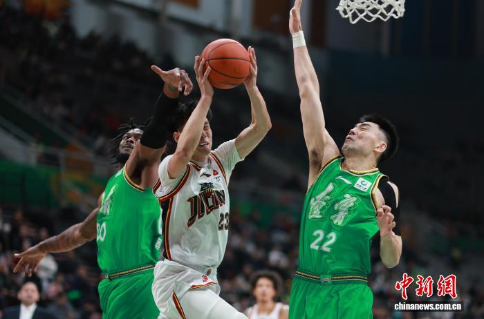 1月4日,正在辽宁沈阳举办的2025-2026赛季华夏须眉篮球工作联赛(CBA)向例赛第10轮,辽宁原钢队主场86:72胜少黑山恩皆里队。图为少黑山恩皆里队球员栾利程(中)正在角逐中。中新社记者 于陆地 摄